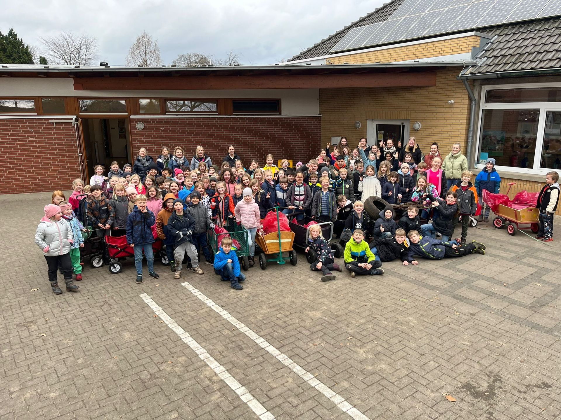 Wie jedes Jahr haben sich auch im Jahr 2024 wieder alle Klassen der St. Vitus-Grundschule dazu entschlossen, den in Venhaus auf den Boden geworfenen Müll einzusammeln. Ausgestattet mit Handschuhen, Müllsäcken und Bollerwagen wurden die Gehwege und Beete der Umgebung vom Müll befreit. Eine tolle Aktion, die den SchülerInnen Spaß macht und mehr Bewusstsein für die Umwelt vermittelt.