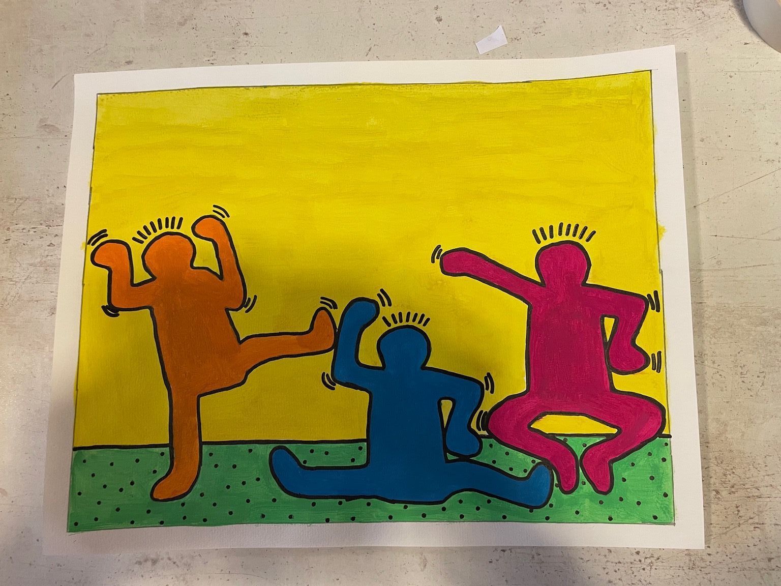 Auch in diesem Schuljahr haben die 4. Klassen wieder ihre selbstgemalten Bilder im Wöhlehof ausgestellt. Im Rahmen des Kunstprojektes haben sich die Kinder mit dem Künstler Keith Haring beschäftigt. Keith Haring ist ein amerikanischer Künstler. Es ist schwer, seine Bilder nicht zu erkennen. Er zeichnet Figuren, allerdings haben diese kein Gesicht. Ob sie traurig oder glücklich sind, kann man nicht erkennen. Die Kinder der 4. Klassen haben mit großer Freude an diesem Projekt teilgenommen.
